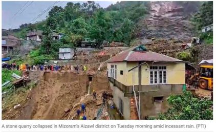 At least 17 people, including two minors, were killed and at least seven others remain missing as a stone quarry collapsed in Mizoram’s Aizawl district on Tuesday morning amid incessant rain. A total of 24 bodies have been recovered in storm related incidents in Mizoram, while another 12 bodies are yet to be recovered. It is feared that the death toll on Mizoram is 36, across 7 different sites.