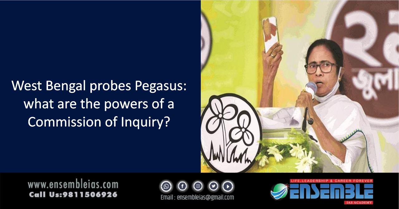The West Bengal government has set up a Commission of Inquiry into the alleged surveillance of phones using the Pegasus spyware developed by the Israeli cyber-intelligence company NSO Group. The Commission, comprising former Supreme Court Justice Madan B Lokur and former Calcutta High Court Justice Jyotirmay Bhattacharya, will look into the alleged breach of privacy of several individuals —journalists, activists, businesspersons, police officials, politicians — both in the government and the opposition.