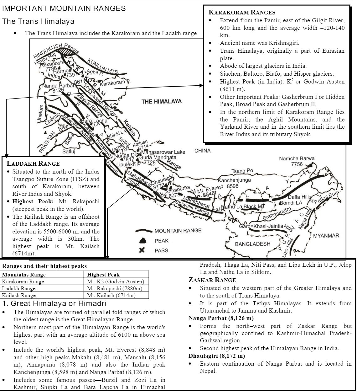 List of Himalayan Peaks from west to east direction.